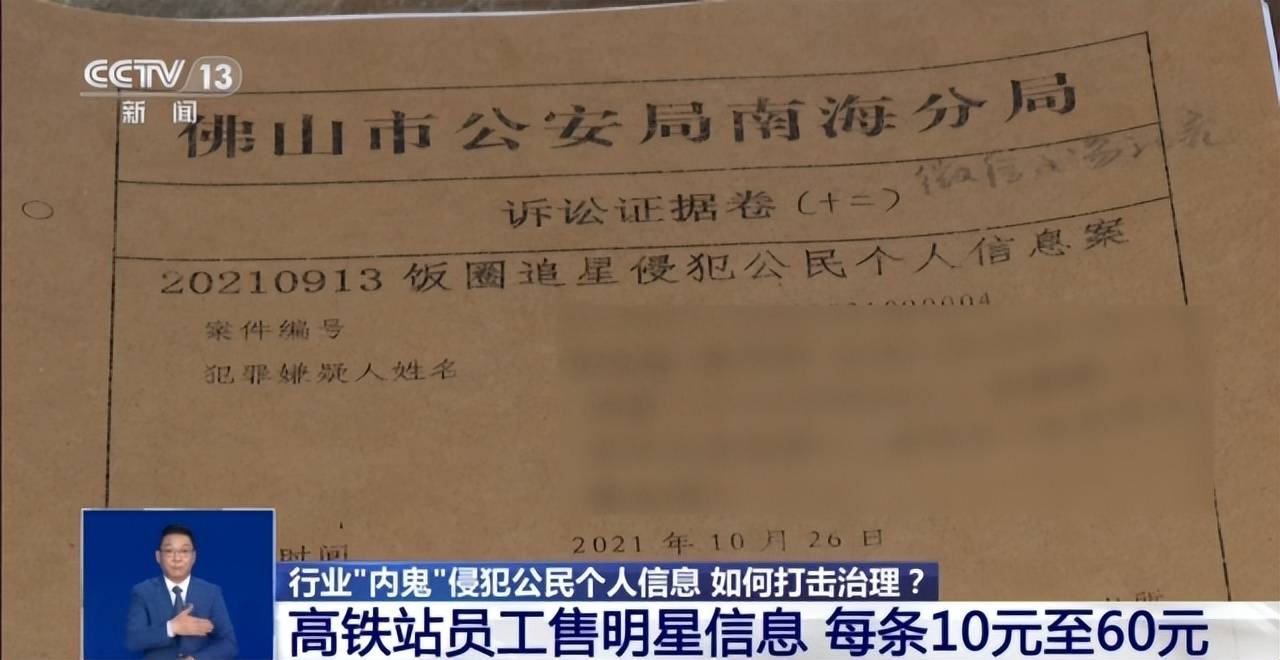 明星高铁出行信息10元一条?身份证号码5元一个?近期,广东省佛山市南海区人民法院通报了一起高铁站员工为赚“快钱”,利用职务便利,有偿代查或出售明星隐私行程的案件,多人获刑。