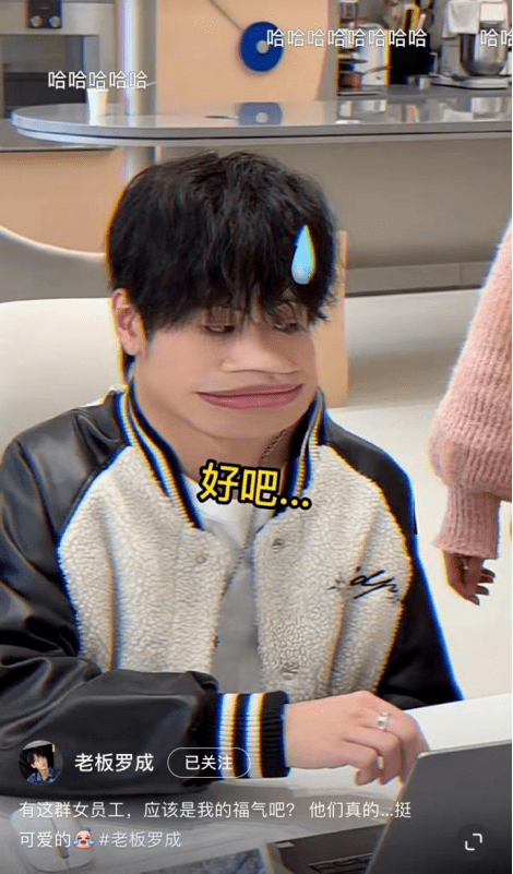 事实上,罗成在社交平台上是一个“社恐富二代”的形象。在一个简单的办公场景中,数十名员工成为罗成打造人设不可或缺的“背景板”。误以为女员工暗恋自己、与社恐司机尬聊、跟客户的局促社交场......在一幕幕堪称“社死”的名场面中,罗成以搞笑的视频表现方式与自成一派的稚嫩演技,在网友心目中留下了“地主家傻儿子”的形象。