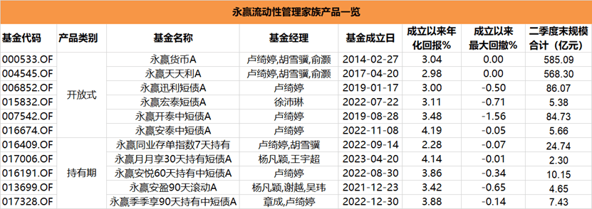 本质上,机构投资者追求的不是收益最靠前,而是风险的可控性,也就是非常注重风险的可预期管理。实际上这样成熟的投资思维同样适用于普通的零售客户。近年来,永赢基金也将这样的理念向零售端投资者渗透,开发了主要面向零售客户的流动性管理家族产品线,从产品的表现看,年化回报基本超过3%,最大回撤基本在1%以下。这一系列的产品均以绝对回报为共同目标,追求纵向维度的低回撤,和横向维度的收益可持续性,也得到不少零售端客户的喜爱,目前总规模合计已经超千亿元(含货币)。