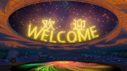 当宣布本届世界大学生运动会开幕时,空中金色焰火热烈绽放,随后空中出现“欢迎”“WELCOME”字样,随着大运会火炬塔被点燃,焰火在空中打出成都第31届世界大学生夏季运动会U形会徽,体育场上空焰火呈现英文“Make Dreams Come True”,命运与共,成就梦想。