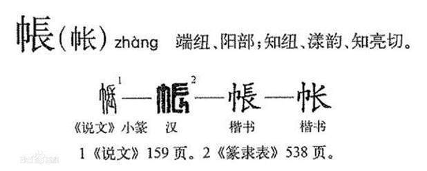 那为什么说“巾”字旁的“帐号”是以前的用法呢?这和汉字源流、造字先后有关。东汉的《说文解字》,可以算得上是最早的字典了,里面只有“巾”字旁的“帐”,而没有“贝”字旁的“账”。“帐”最早的本义是床帐,而古人又常常会把有关金钱出入的账目写在布帛上保存起来,所以“巾”字旁的“帐”才引申出了和账目有关的这层含义。后来,人们为了避免混淆、加以区分,就新造了“贝”字旁的“账”字,分担了原来“帐”字和钱财物出入有关的含义。