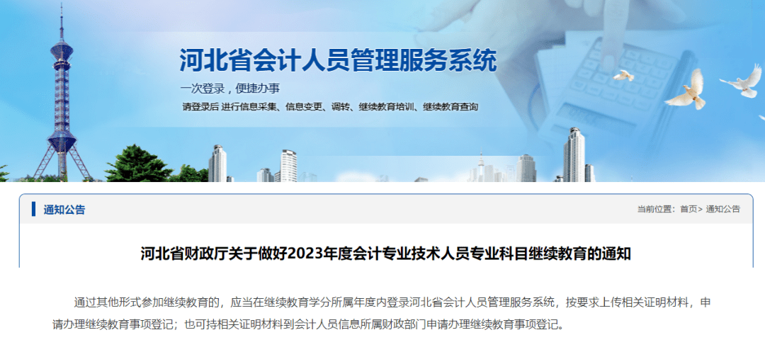 通过其他形式参加继续教育的,应当在继续教育学分所属年度内登录河北省会计人员管理服务系统,按要求上传相关证明材料,申请办理继续教育事项登记;也可持相关证明材料到会计人员信息所属财政部门申请办理继续教育事项登记。