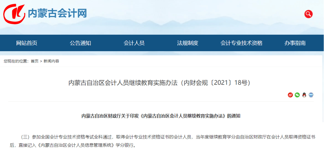 参加全国会计专业技术资格考试全科通过,取得会计专业技术资格证书的会计人员,当年度继续教育学分由自治区财政厅在会计人员取得资格证书后,直接记入《内蒙古自治区会计人员信息管理系统》学分银行。