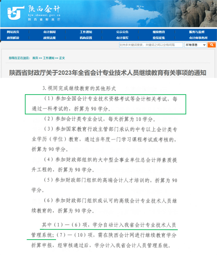 (一)在天津考区参加全国会计专业技术资格考试,并至少通过一科的,可抵免考试当年继续教育90学分,学分所属年度为参加考试年度;