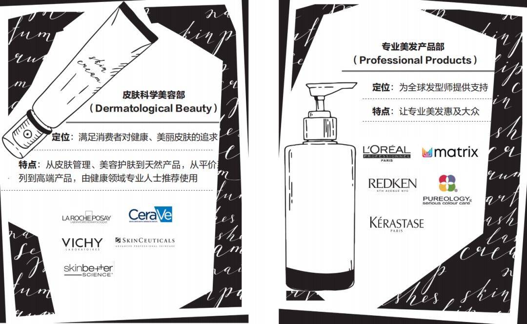 36个品牌、四大事业部(高档化妆品部、大众化妆品部、皮肤科学美容部和专业美发产品部)支撑起欧莱雅成为全球第一大美妆集团。