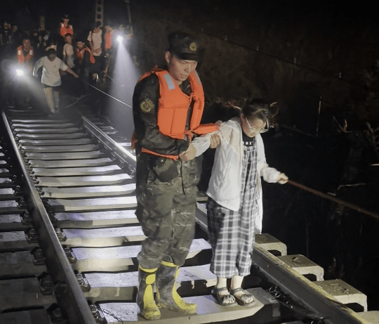 由于途中部分铁路线受损,救援部队采取徒步行进的方式,全程约12公里,历时4个小时,终于挺进K396次列车受困区域,沿途还对部分受灾群众进行了救助。目前,救援部队已经平安转移乘客328人。