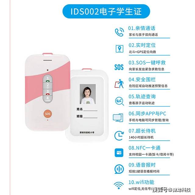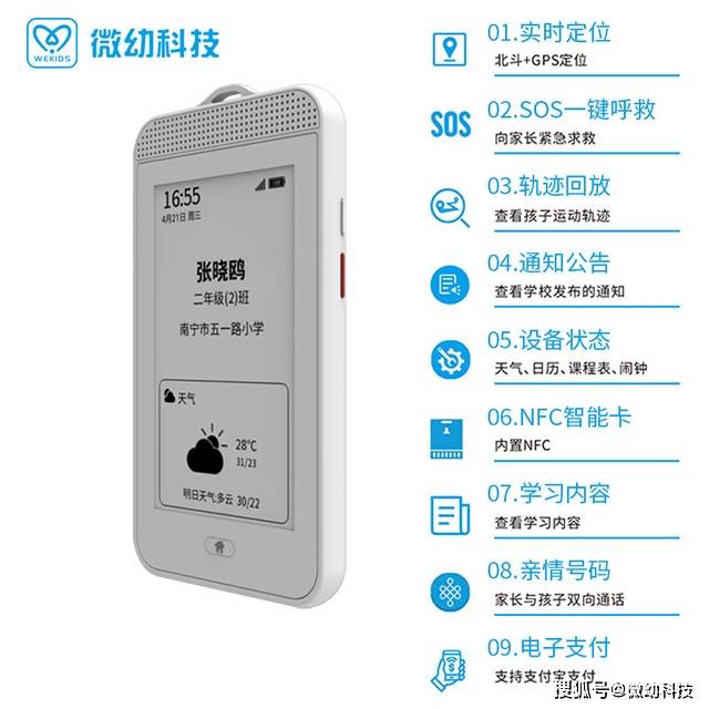 墨水屏电子学生证是微幼科技推出的一款保卫中小学生安全的一个产品,旨在为学校构建平安智慧校园。它的功能除了可以正常双向通话、实时定位、SOS求救、电子围栏、行走轨迹查询等外,还可以用于考勤、图书借阅、校内支付、阅读书籍等。