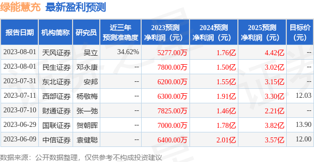 中泰证券股份有限公司王可,王子杰近期对绿能慧充进行研究并发布了研究报告《业绩扭亏为盈,充电桩业务未来可期》,本报告对绿能慧充给出增持评级,当前股价为8.41元。