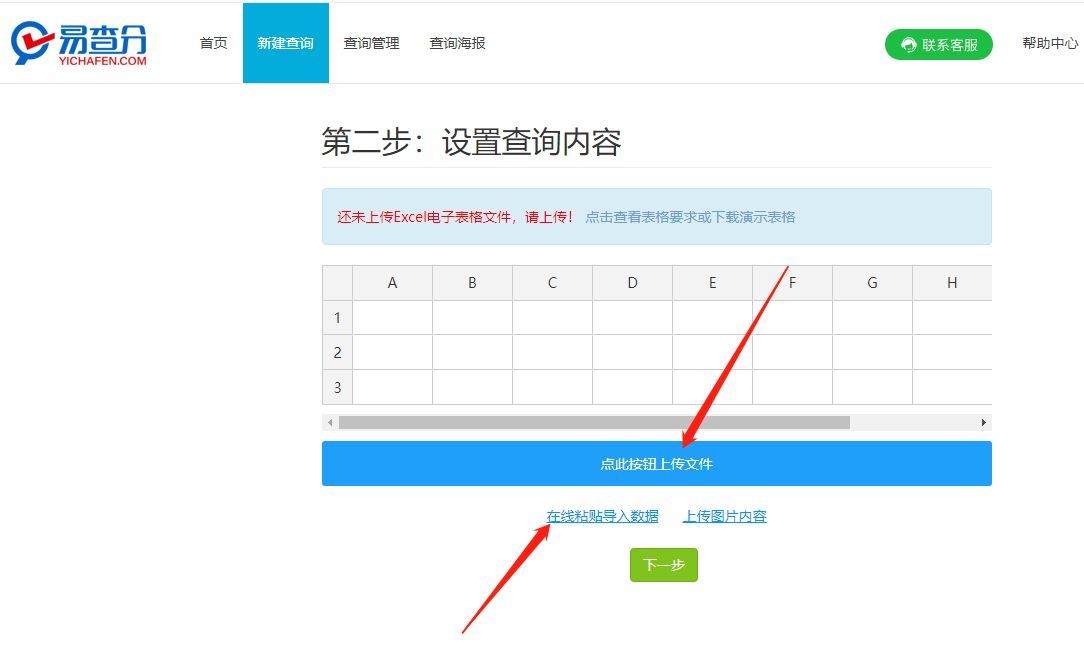 进入易查分后,点击首页的【新建查询】进入创建查询向导;