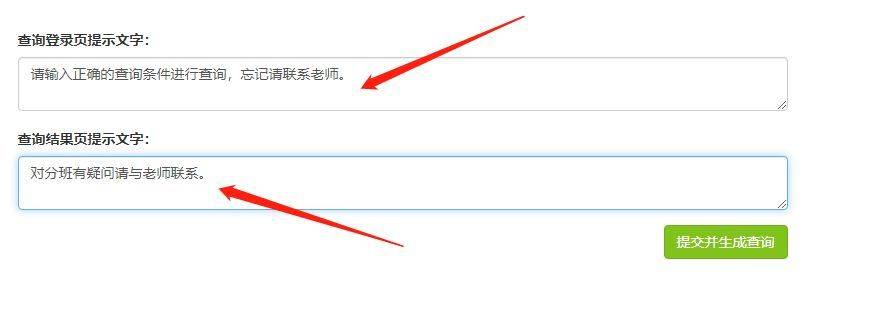 我们可以在【查询登录页提示文字】中输入查询提示,提示学生,如果输入信息后出现错误,应怎样解决?在【查询结果页提示文字】中,可以设置提醒学生确认分班情况、入学报到等注意事项;