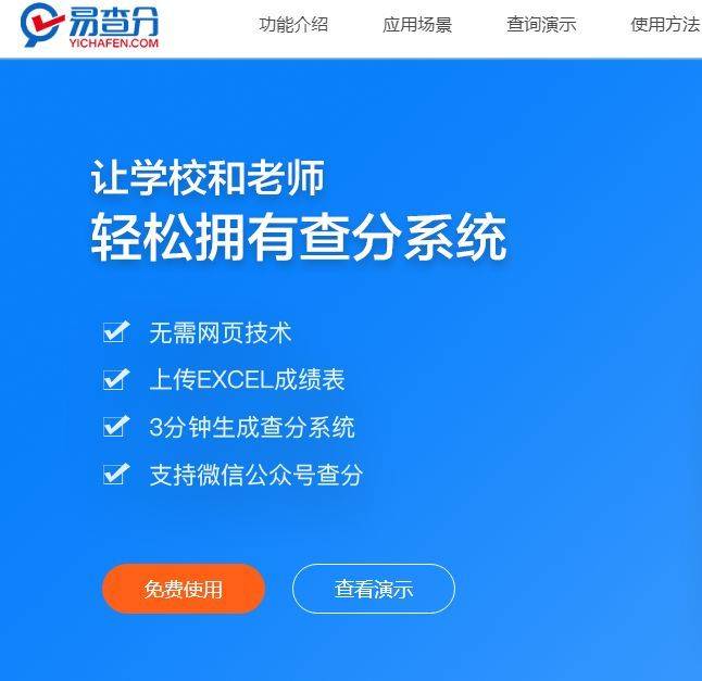 易查分是一款功能强大的直接生成各类查询系统的平台,只需将需要查询的Excel表格导入易查分,并进行简单设置,就可以免费生成一个查询系统!易查分不仅可以建立学生分班查询系统,还可以建立学生成绩查询系统、录取查询系统等多种实用系统。操作非常简单,即使对技术不熟悉的人也能轻松上手,无需任何技术或设备。