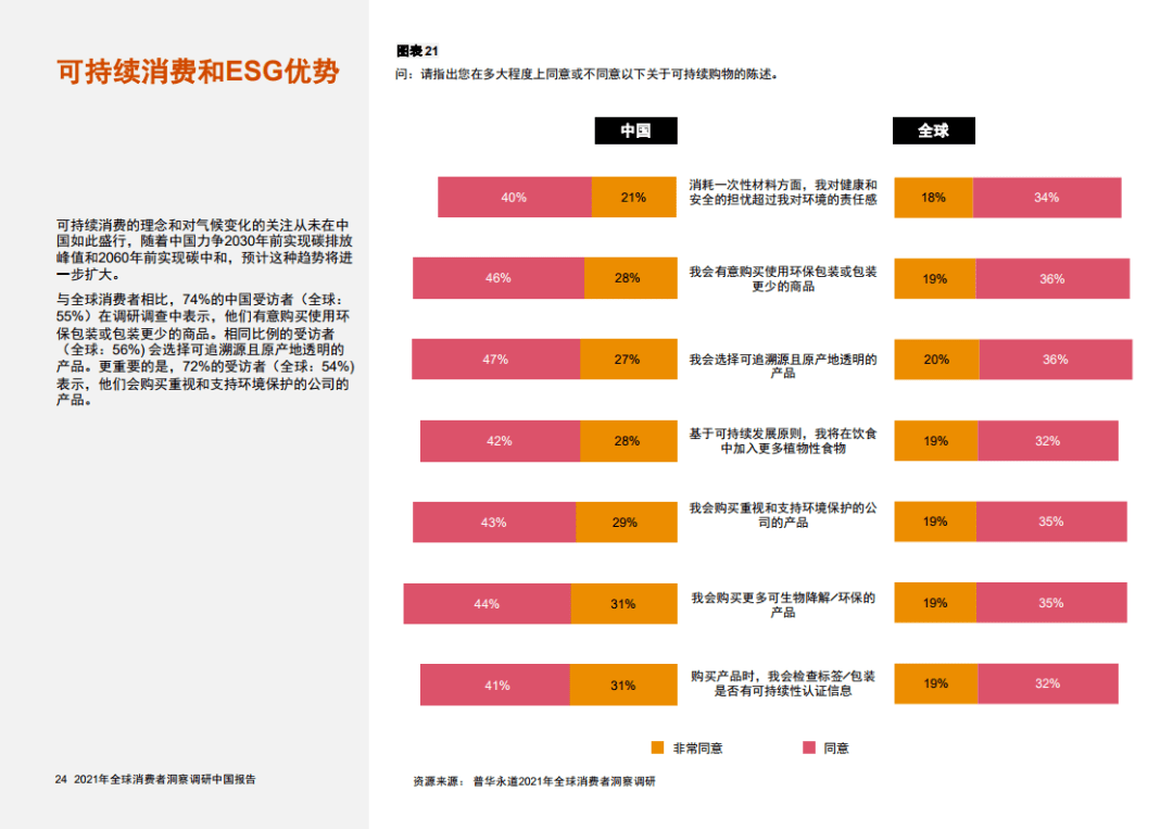 据普华永道《2021年全球消费者洞察调研》显示,我国有74%居民表示有意购买使用环保包装或包装更少产品以及会选择可溯源且原产地透明产品。