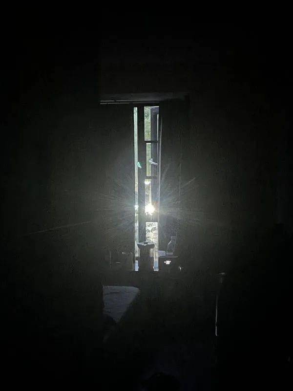 记者在现场看到,王女士所说的这家如家酒店位于民生路上,正好处于申立苑、中星恬园等小区的“包围”之中,与小区仅一墙之隔。进入酒店停车场要经过一道闸机,闸机处设置有一处落地灯箱,下方两处探照灯,还有一排四孔小射灯。到了晚上,这些灯具都会打开,一片敞亮。记者发现,这些灯光在近处看还不是特别明亮,但是穿透性非常强,尤其是探照灯和射灯发出的强光犹如汽车开启了远光灯,远看非常刺眼,直面灯光根本睁不开眼睛。
