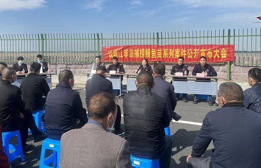 浙江省杭州市钱塘区检察院办理的非法捕捞水产品案不起诉公开宣布大会。