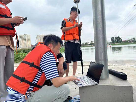 ▲天津市水资源中心的工作人员在永定河测定水文数据