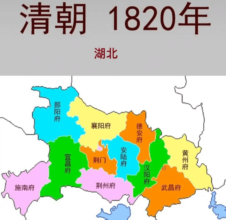 截止清朝嘉庆皇帝在位时期,湖北省逐步形成了10个府、1个直隶州、1个直隶厅的区划。分别是:武昌府、汉阳府、安陆府、襄阳府、郧阳府、德安府、黄州府、荆州府、宜昌府、施南府、荆门州、鹤峰厅。当时,湖北省的郧阳府下辖了6个县,分别是:郧阳、房县、竹山县、竹溪县、保康县、郧西县。