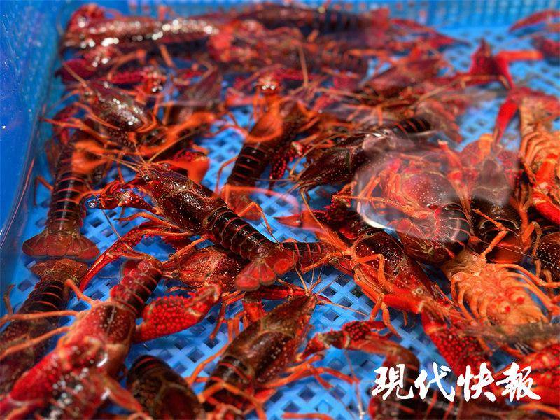 8月3日上午,现代快报记者来到南京市秦淮区一家农贸市场的水产区,小龙虾、对虾、螺丝虾、基围虾等应有尽有。小龙虾快要下市了,现在价格比较高。一名商户老板告诉记者,最近小龙虾价格反弹,个头偏大的龙虾零售50元一斤,中等个头的38元一斤。