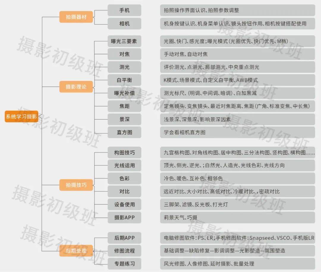 对于初学者来说,最怕的就是东看一篇摄影教程、西看一篇摄影教程,最后学得不系统,零零散散的。说不知道吧,又知道一些;说知道吧,又不够系统。