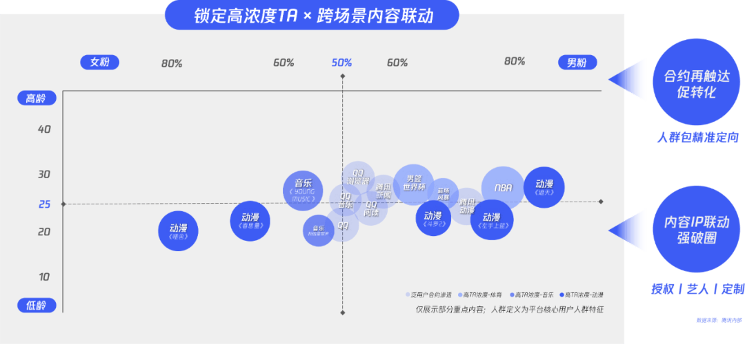 针对不同类型游戏产品,锁定高浓度TA场景,与音乐、动漫、体育、综艺等资源开展深度内容联动,触达细分人群圈层,拓展产品价值空间。