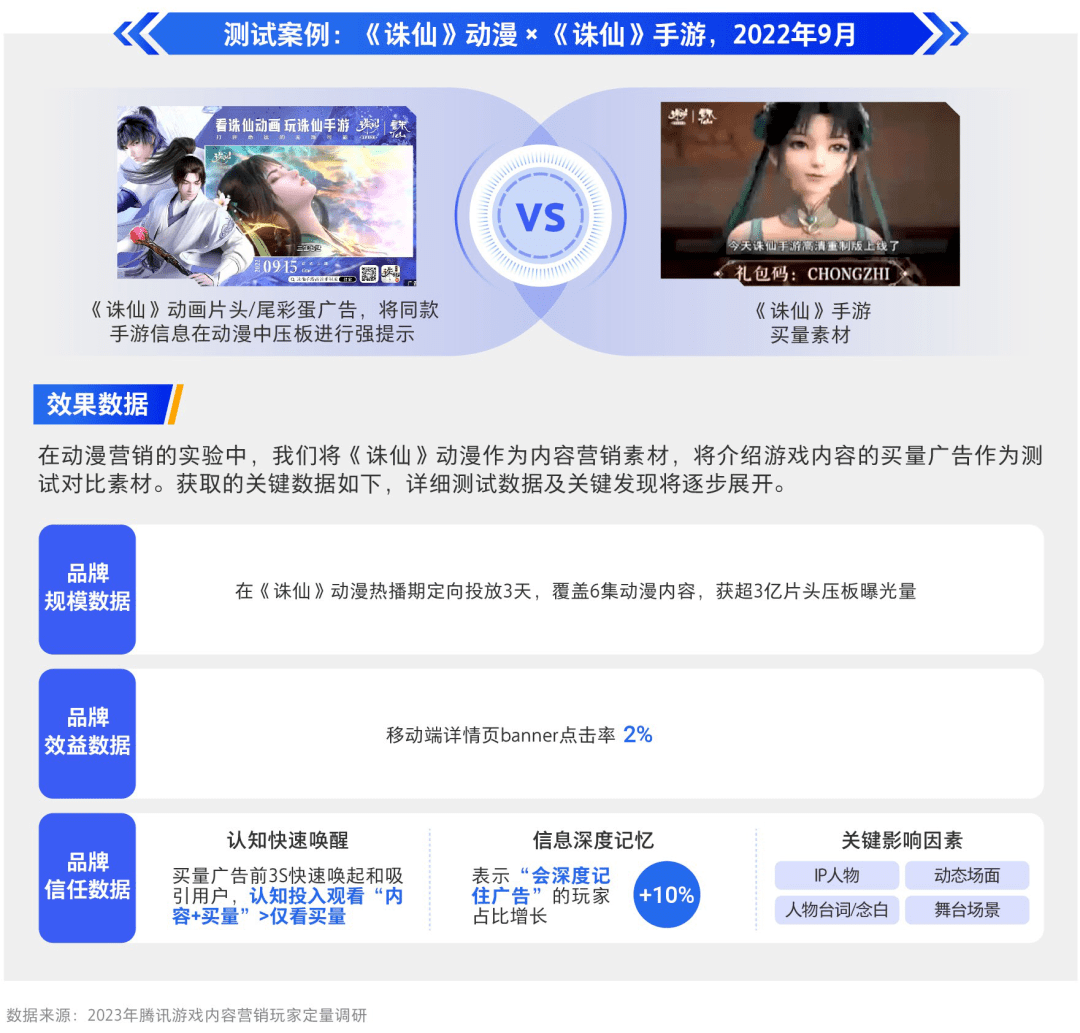 动漫与游戏的联动营销,能够在广告前3s快速唤醒玩家认知,并显著提升玩家对游戏的记忆深度(+10%)。