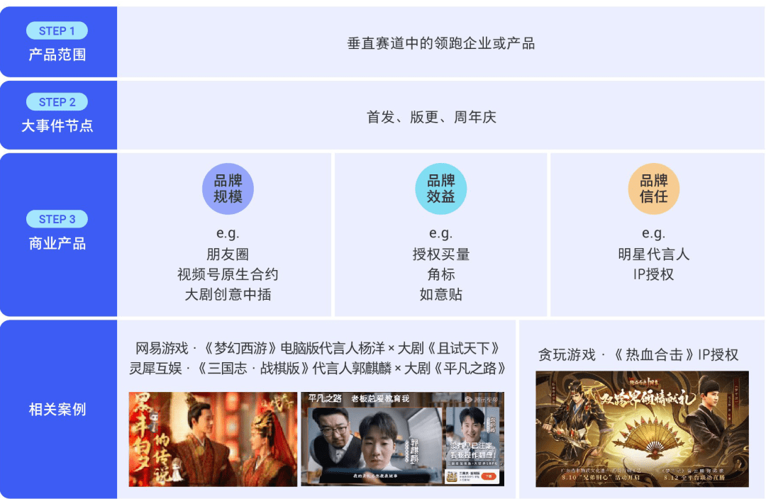 研发期、封测期:以优质品牌信任类资源为主,如IP合作、代言人合作、定制主题曲等。