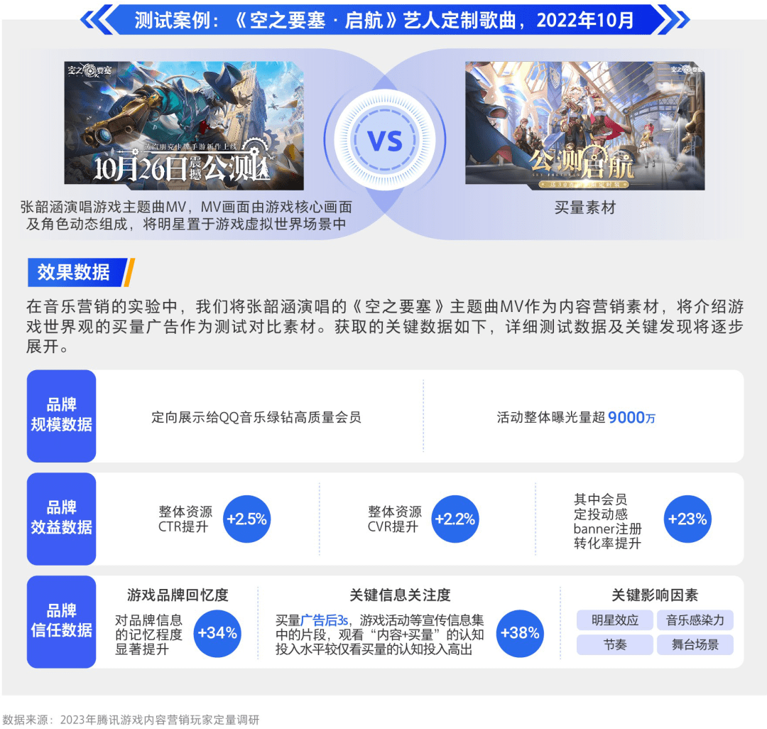 音乐与游戏的联动营销,能够有效提升玩家对品牌信息的记忆度(+34%),和对关键信息的关注度(+38%)。