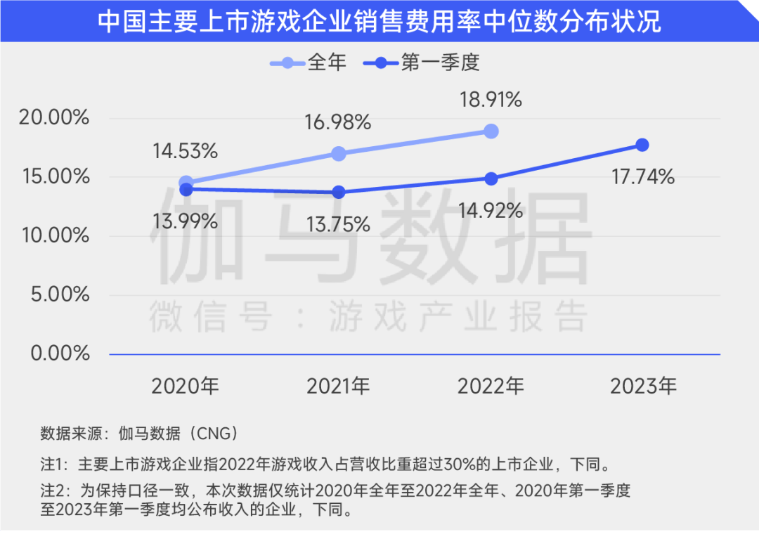 用户付费能力减弱进一步加重了企业的竞争压力,较多企业选择加码营销布局,使得销售费用率不断抬升,2022年全年及2023年第一季度销售费用率的中值分别为18.91%和17.74%,均为近年新高。但较多企业的营销方式和思维模式并未同步升级,高度依赖竞价广告、营销工具迭代不及时等现象在产业内仍较为普遍,并在较大程度上导致营销效果下滑。