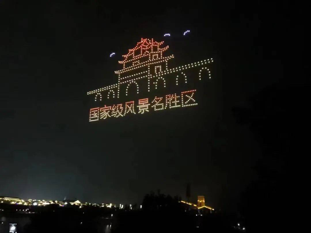 2018年4月,西安城墙上空举行了一场刷新吉尼斯世界“最多无人机同时飞行”记录的表演,1374架无人机飞上夜空。