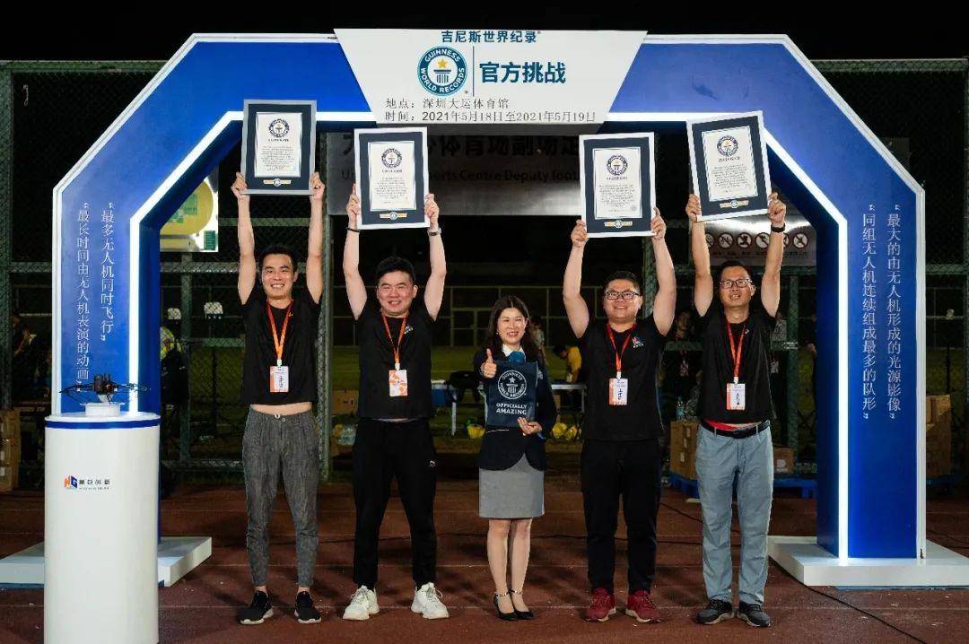 同年5月,高巨创新在深圳龙岗大运体育中心,以5200架无人机一举刷新四项吉尼斯世界纪录。其总经理骄傲地说:“近年来无人机表演领域的各项纪录都是在中美企业之间易主,美国是英特尔,中国有我们高巨创新。”