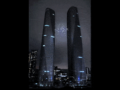 最初的无人机表演,通过静态机位加灯光变化来表达内容,最常见的就是在空中拼文字。