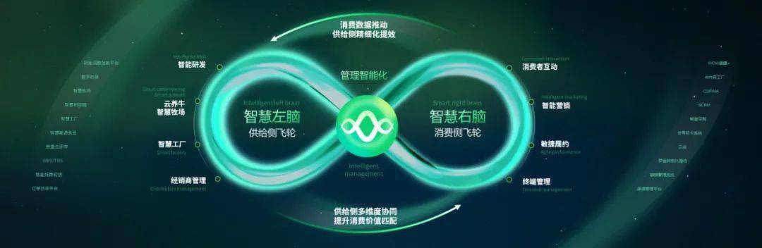 蒙牛数智化3.0的战略,将重点利用AI赋能的数智化双飞轮,引领乳品行业智能化的新起点。“智慧左脑”供给侧飞轮,集合智能研发、云养牛智慧牧场、智慧工厂等数智化方案,多维度协同匹配消费者价值需求;“智慧右脑”消费侧飞轮,从消费者互动、智能营销、敏捷履约等多维度集成,实现消费数据推动供给侧精细化提效;“企业智慧大脑”管理智能化系统平台则是两个的数据纽带。蒙牛的AIGC平台,将覆盖100+智能化业务场景,让每个蒙牛员工在AI赋能下都变成“超级员工”。