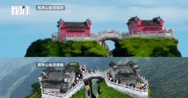 梵净山金顶释迦殿和弥勒殿作为景区的一部分,外墙“变色”,已然属于显著的外观变化,不该这么稀里糊涂地没人管。