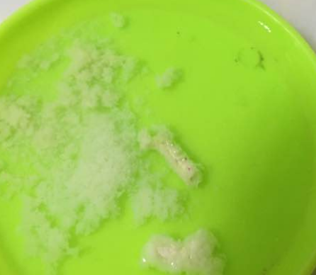 真的豆腐猫砂在融入水中之后,1,2分钟就会分解几乎与水融为一体。而假的豆腐猫砂,在相同时间内根本达不到真猫砂的状态,好一点的仿造品会泡大,但是并不能溶剂,差的仿造品连融水都融不进去,十几分钟就和没泡水一样,还是原来的状态。