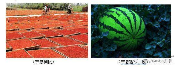 宁夏平原的小麦、水稻产量高且稳定,枸杞、瓜果品质优良。银川附近遍布的湖沼是宁夏的水产基地,而贺兰山前广袤的草场,则是宁夏滩羊的重要产区。