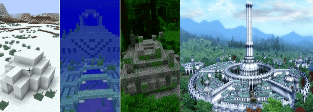 《我的世界》(Minecraft)中随机生成的人工构造,以及《上古卷轴 4:湮没》(The Elder Scrolls IV: Oblivion)中老远就能看到的帝都白金塔