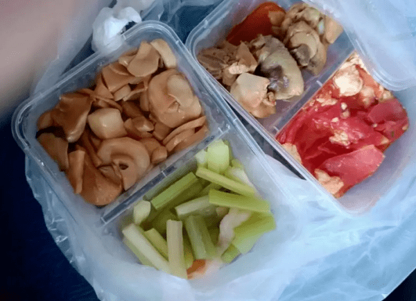 “餐车熬了大米粥运到车厢分发,每人可以分两三勺,先紧着老人儿童吃。然后因为这事太突然了,大家都没准备盛粥的餐具,我们就用前一天吃完留下的泡面桶和八宝粥罐头盛粥。”谢先生说,“那个粥挺稀的,米很少,但是真没办法了,太多人要分了。”