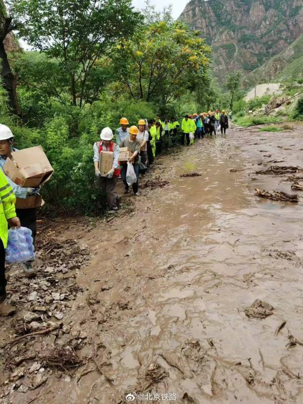 据央广网报道,当晚,沿河城站工作人员将站内储备的方便面100箱、矿泉水6箱、鸡蛋60公斤、八宝粥20箱和各类生活物资送来应急。