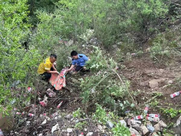 物资空投落地后,包装就散了,很多物资散在坡上、落到水里,乘务员和志愿者们就钻到没过膝盖的河水中,尽全力打捞物资。