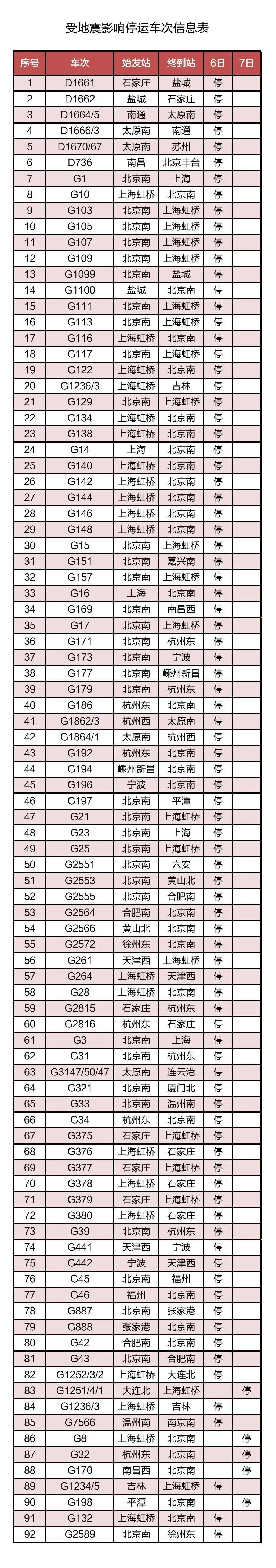 受山东省德州市平原县发生5.5级地震影响,多趟铁路列车暂时停运。 国铁济南局也表示,由于正在对相关线路进行设备检查,途经列车将出现不同程度晚点。