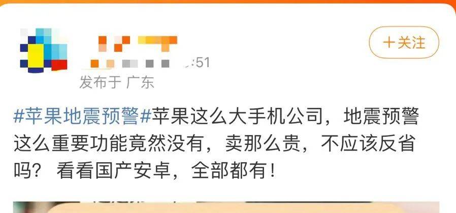 8月6日,话题#苹果地震预警#登上微博热搜。有网友发现,“苹果这么大的手机公司,地震预警这么重要的功能竟然没有”。