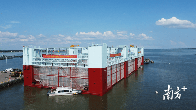 今年以来,广东沿海地市加快“挺进深蓝”。图为广东最大的海上养殖平台“海威2号”在湛江顺利下水。张令 摄