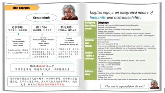 那么如何对一整个单元进行单元整体设计的说课呢?接下来和大家分享一节选自沪教牛津版九年级上册Unit2,主题为Great minds的单元整体设计说课,一起来学习其中的内在逻辑吧!