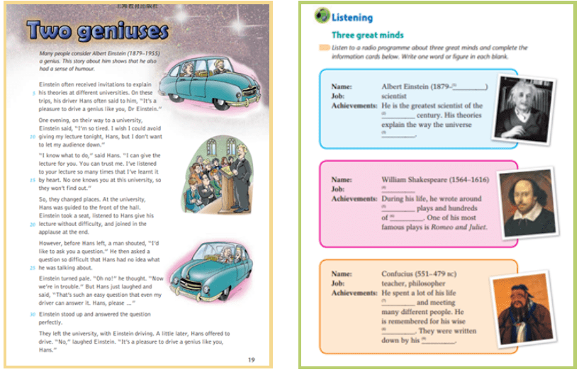 例如在本单元中,围绕着 “伟大人物”这一主题分别涉及了六大语篇,涵盖各类语篇类型(故事、信息卡、电话对话、连环画、人物传记等),并且整合了“听说读写看”等五大语言技能,对其进行综合分析有助于教师有的放矢把握教学重难点、进行合理改编和语言技能整合训练。