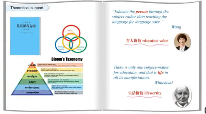 ---There are altogether five parts in my teaching design. I will mainly introduce it from these five aspects: design theory, methods, contents, objectives and procedures.