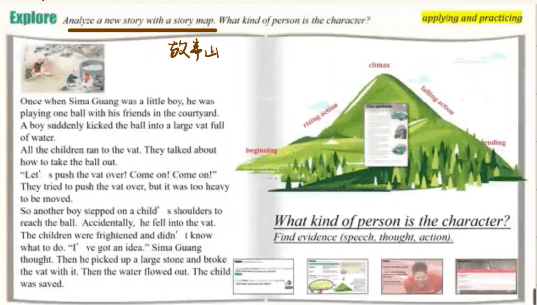 任务二:运用故事山分析文章的发展脉络,并初步分析人物性格特征(从人物的言语、思想和动作几方面寻找evidence)