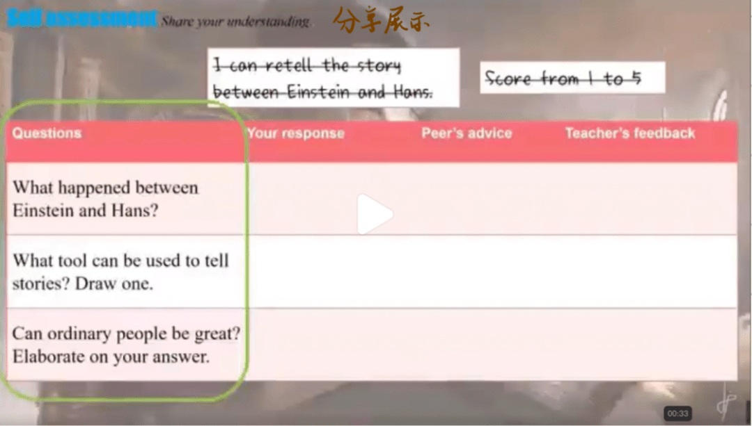 在最后的自评环节,学生可以根据表格中的问题链进行自我反思和回顾,同伴互评和师生共评有助于学生对这些问题进行更深入全面的思考和理解。
