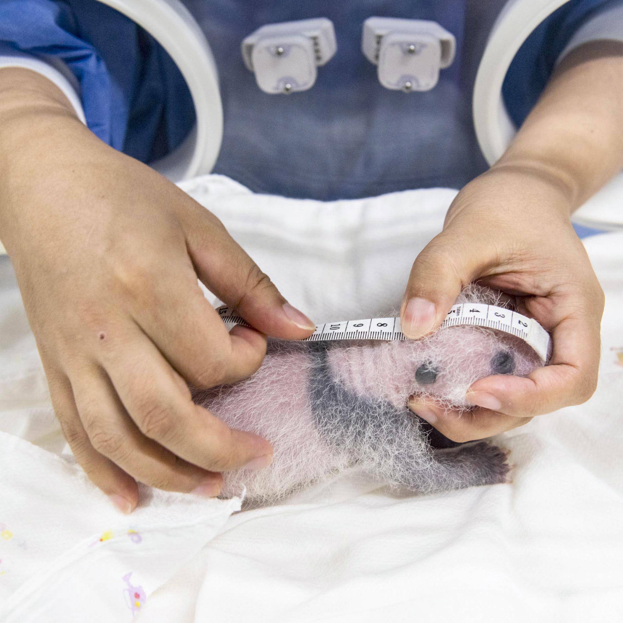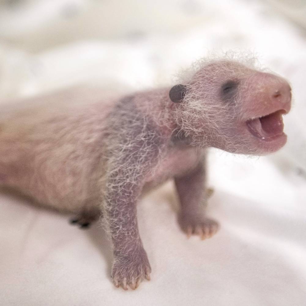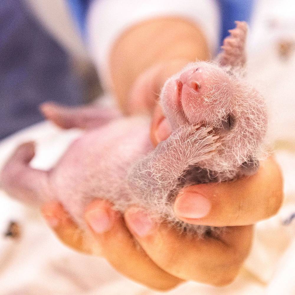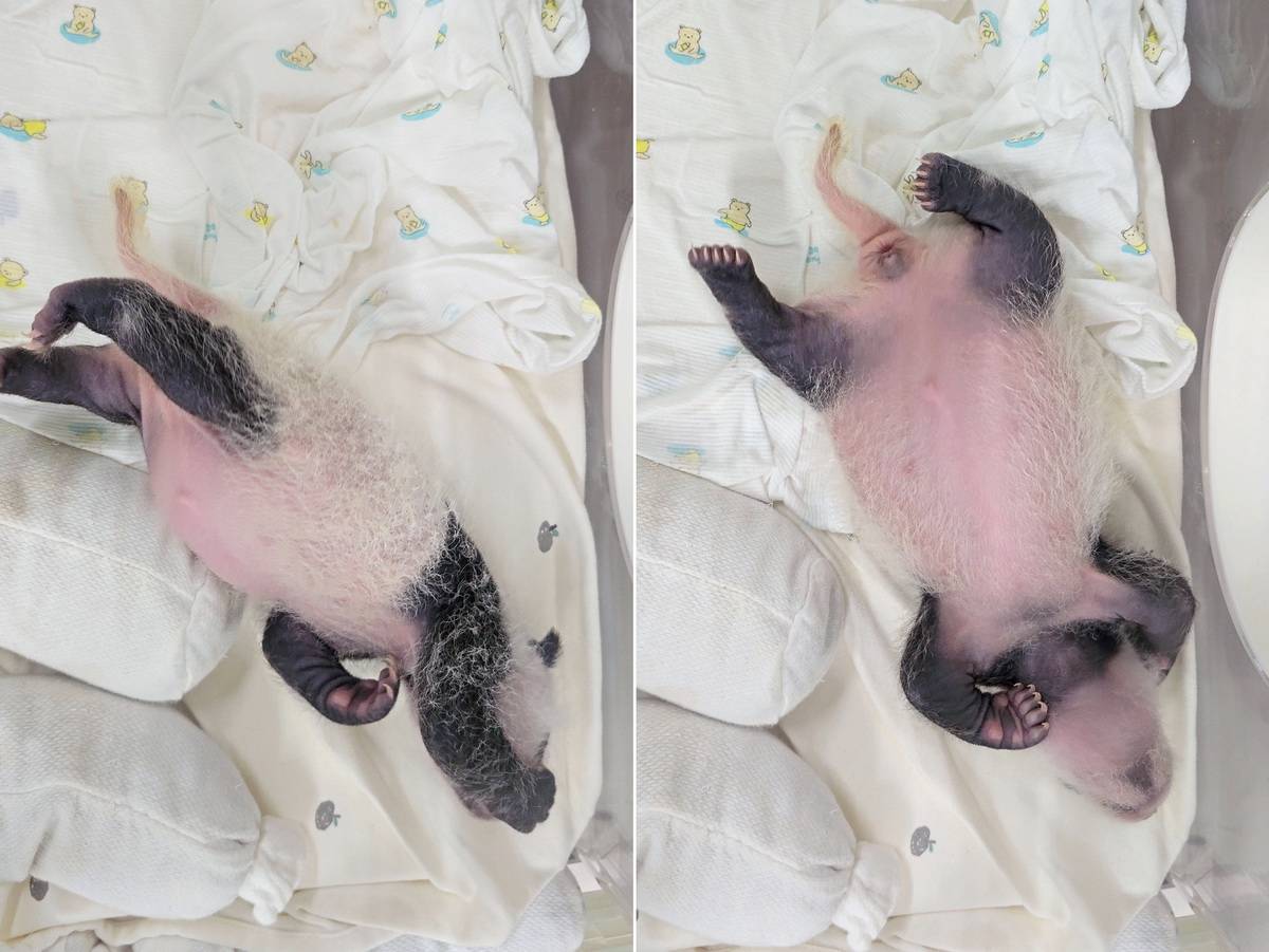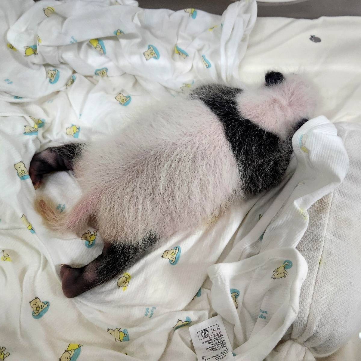 熊猫宝宝的绒毛越来越长,即将可以调节体温。