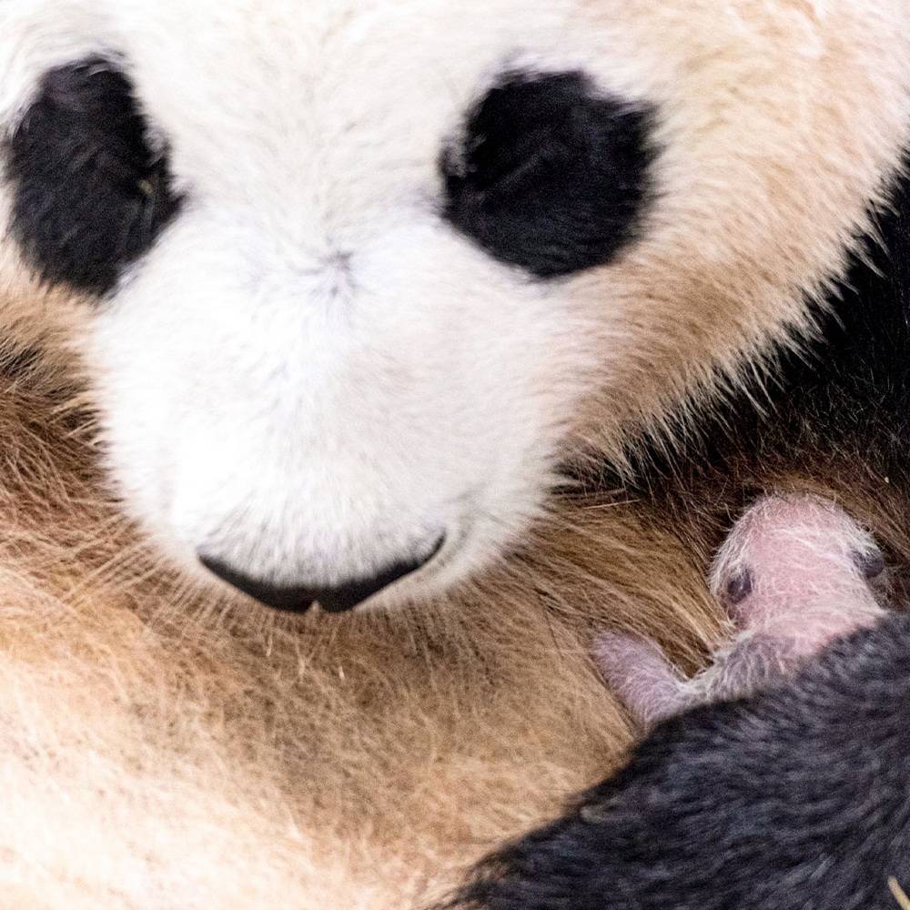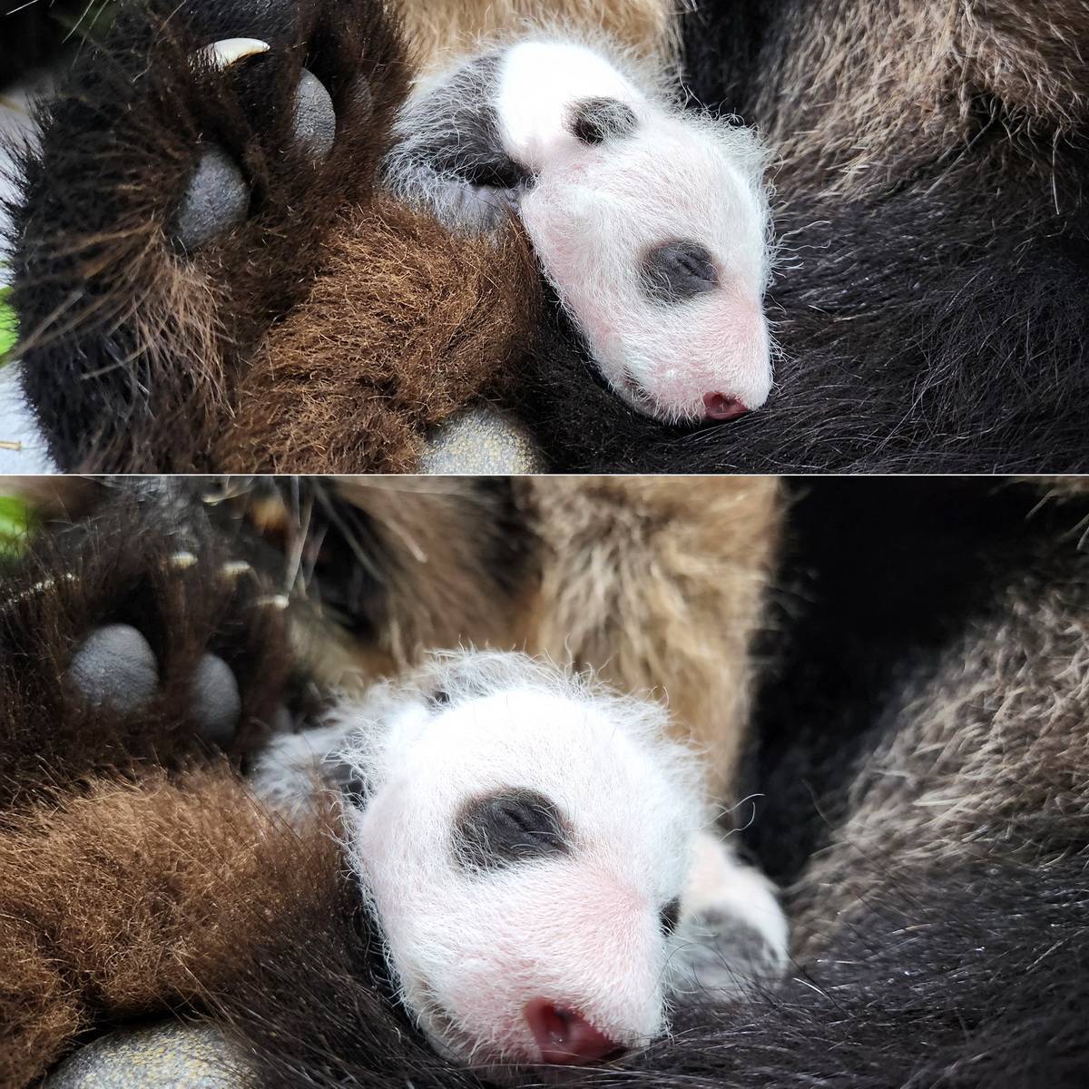 8月7日,旅韩大熊猫“爱宝”的双胞胎宝宝满月啦。韩国爱宝乐园当日在其社交网站上晒出大熊猫双胞胎幼崽前一天拍摄的满月萌照。