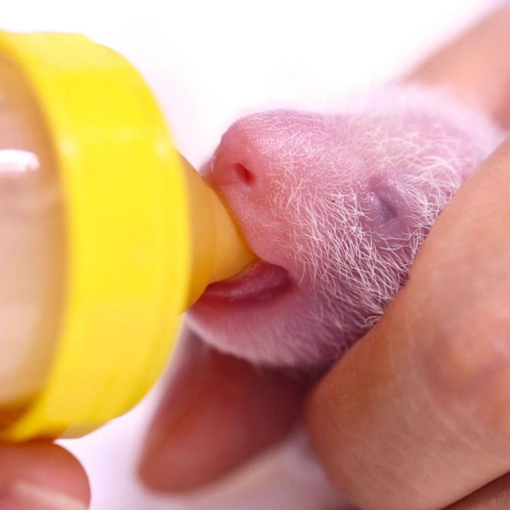 饲养员们会根据宝宝们的生长阶段,适当增加人工喂养的母乳量。刚出生时,熊猫宝宝每次母乳摄入量约6毫升。出生约2周左右,母乳摄入量增加了一倍多,达到15毫升。熊猫宝宝排便量相应地也在增加。