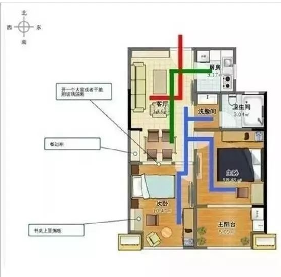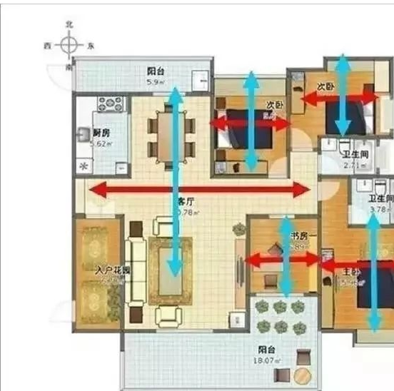2、好的户型一般都会有两面采光与通风,能形成对流效果。
